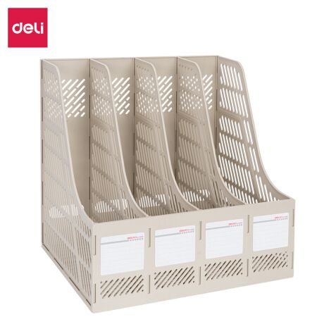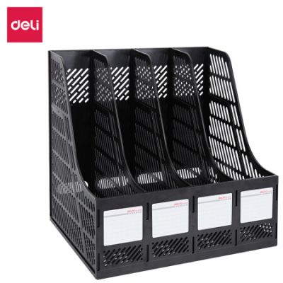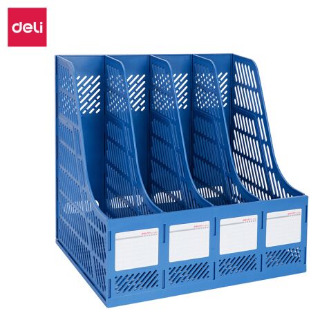 得力(deli)四聯鏤空桌面文件框 四欄帶標簽穩固文件欄/文件筐/資料框 辦公用品 藍色9848
