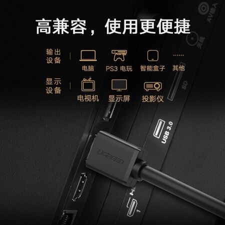 綠聯(UGREEN)HDMI線2.0版 4K數字高清線 2米 3D視頻線工程級 筆記本電腦機頂盒連接電視投影儀連接線 10107