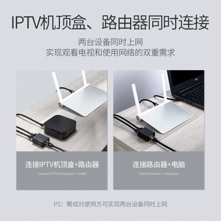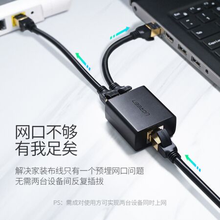綠聯(UGREEN)網線分線器一分二同時上網轉接頭 RJ45網絡雙網口延長器直通三通頭 IPTV寬帶接口分接器50923