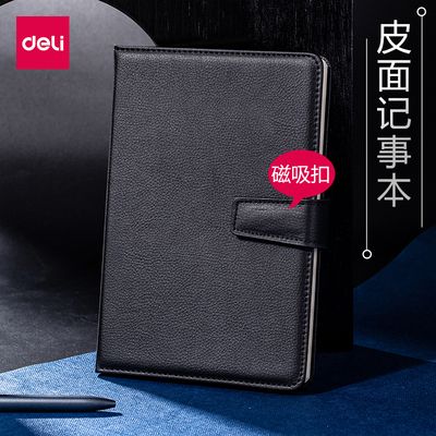 得力3301皮面本筆記本磁吸扣PU面超厚加厚記事本辦公商務黑色皮面