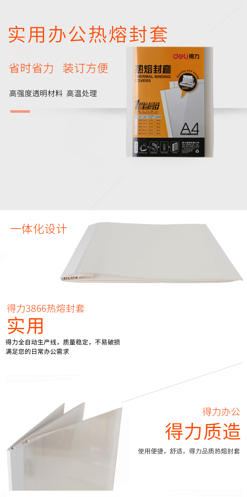 得力(deli) 塑料封套 10個 A4膠裝透明封面 裝訂合同標書紙質封皮 3869 3864 3865 3866 3867 熱熔封套