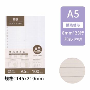晨光文具 A5 100頁 本味活頁紙替芯 活頁芯 活頁本替芯 活頁紙內芯 A5 活頁替芯