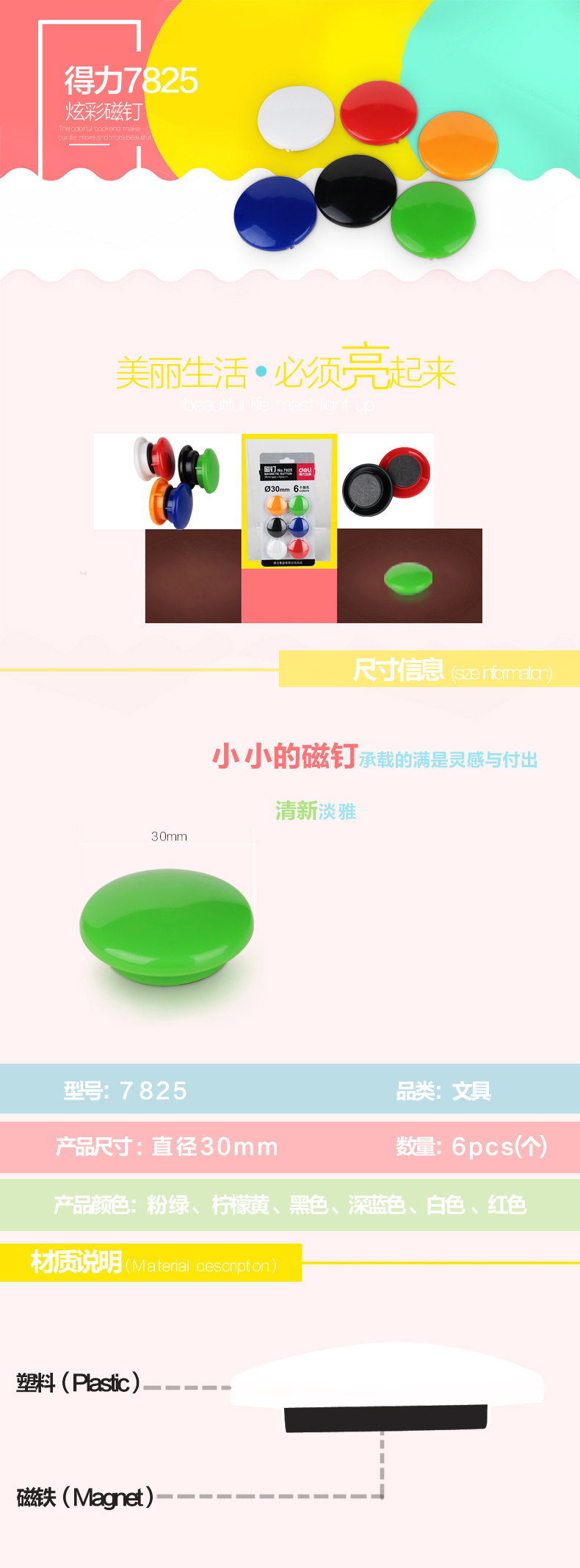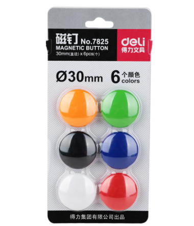 得力(deli) 磁釘30mm 白板磁扣釘白板專用吸力強吸鐵石 6個顏色 7825 磁粒