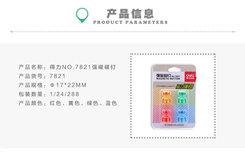 得力(deli) 得力7821磁釘 白板磁扣 強吸鐵石 7821強磁 磁粒