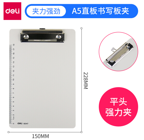得力夾板 A5板夾 書寫夾板 寫字板 夾板 墊板 木板夾子 9247(A5塑料平夾) 平板夾