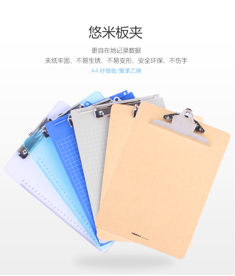 悠米 A4夾板 A4板夾 書寫夾板 寫字板 夾板 墊板 木板夾子 W05001B A4塑料平夾) 平板夾