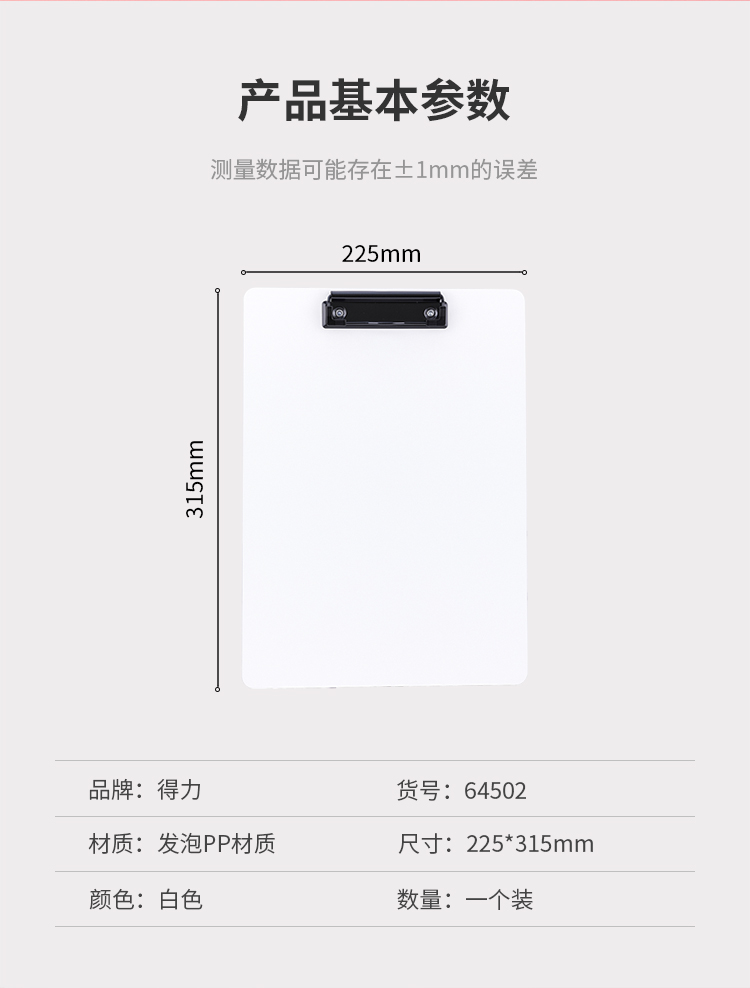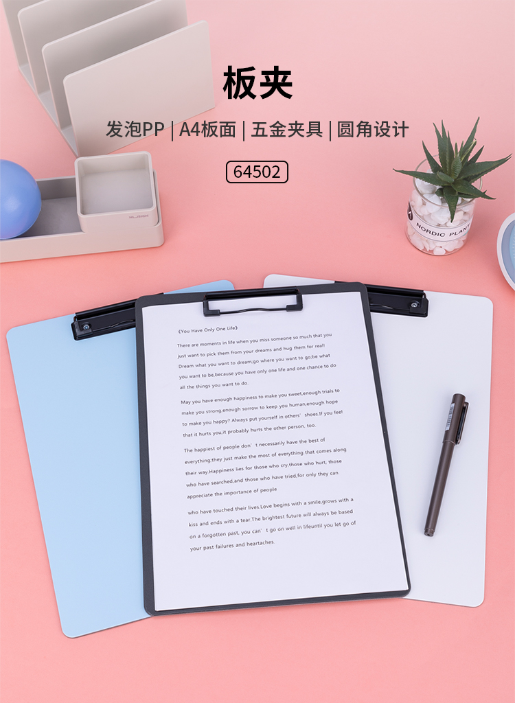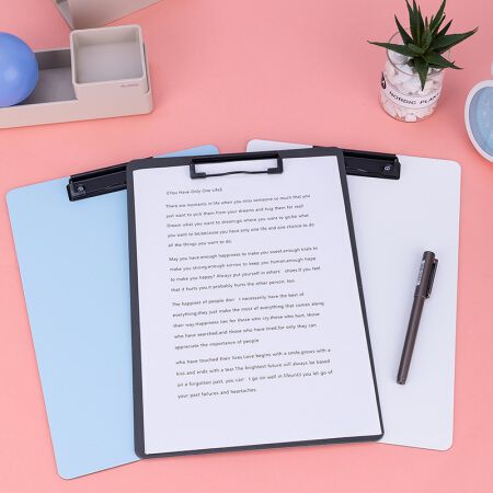 得力(deli)A4書寫板夾 金屬強力夾塑料夾板 多功能寫字墊板 辦公用品64502淺藍色