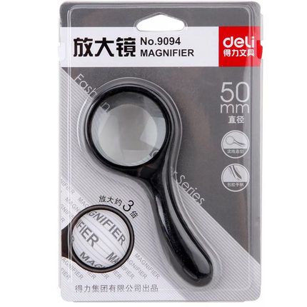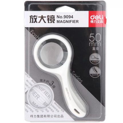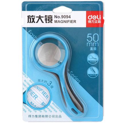 得力9094放大鏡 放大約3倍鏡片直徑50mm 手持包膠手柄放大鏡