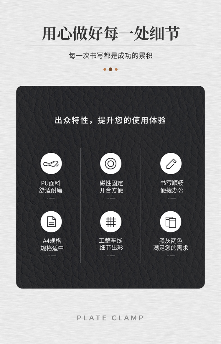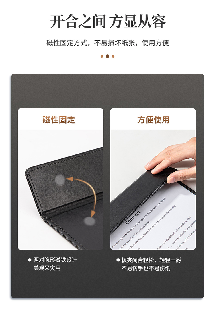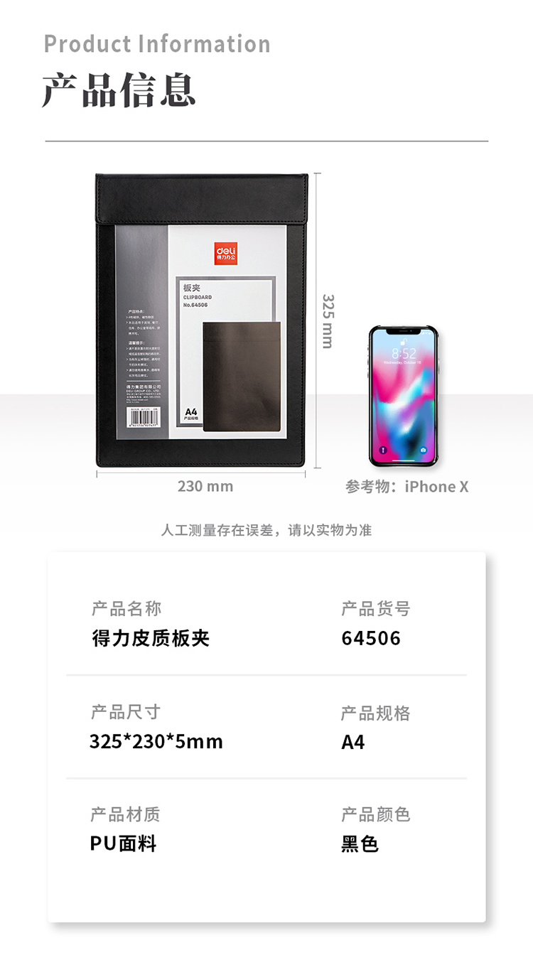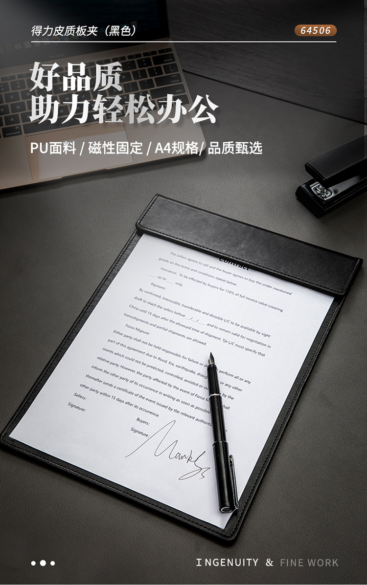 得力(deli)A4皮質(zhì)板夾書寫墊板 會議夾磁性夾板報(bào)告夾帶筆夾 黑64506