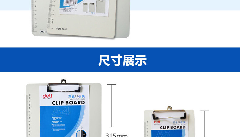 得力夾板板A4板夾書寫夾板文具寫字板夾板墊板紙板木板夾子學(xué)生試卷a5菜單夾多功能 辦公用品 9248(A4塑料平夾)