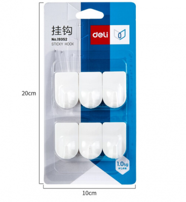 得力(deli)強(qiáng)力粘膠掛鉤 掛衣鉤 廚房浴室墻壁免釘門(mén)后掛衣鉤 19352 6只/卡(承重1kg)