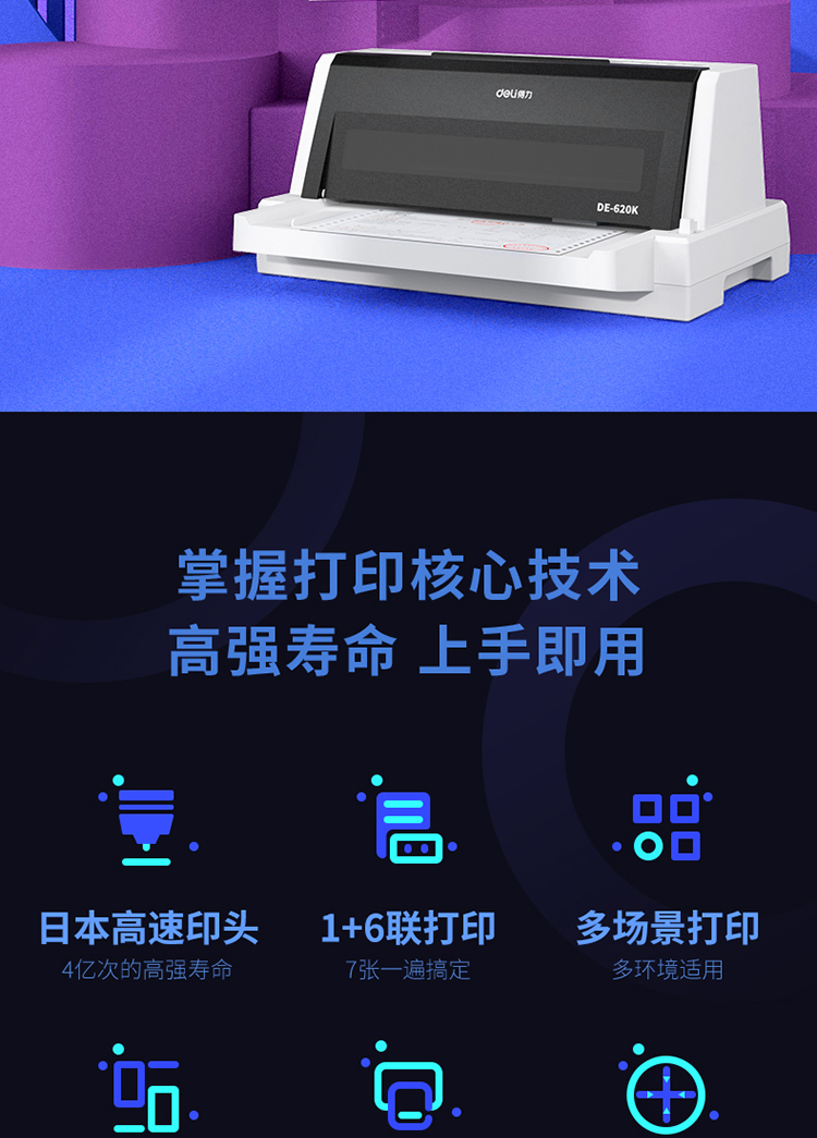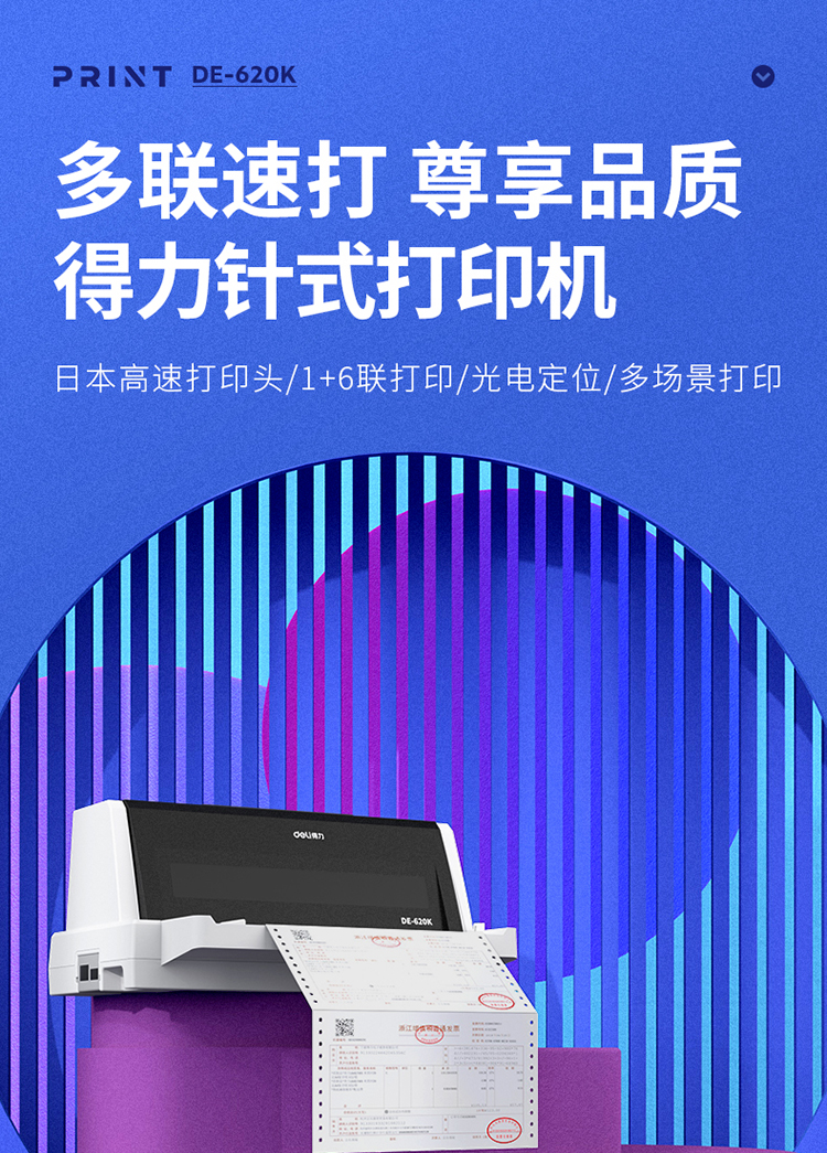 得力(deli)DE-620K 1+6聯針式打印機 營改增稅控發票打印機 票據電子面單快遞發貨出庫辦公打印機(85列)