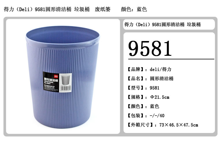 得力(deli) 9581(深藍)圓形清潔桶 紙簍 垃圾桶