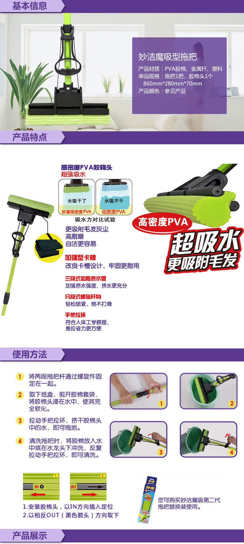 妙潔 MOJ-TR 28cm 魔吸型膠棉拖把 海綿拖把