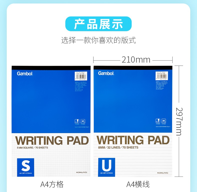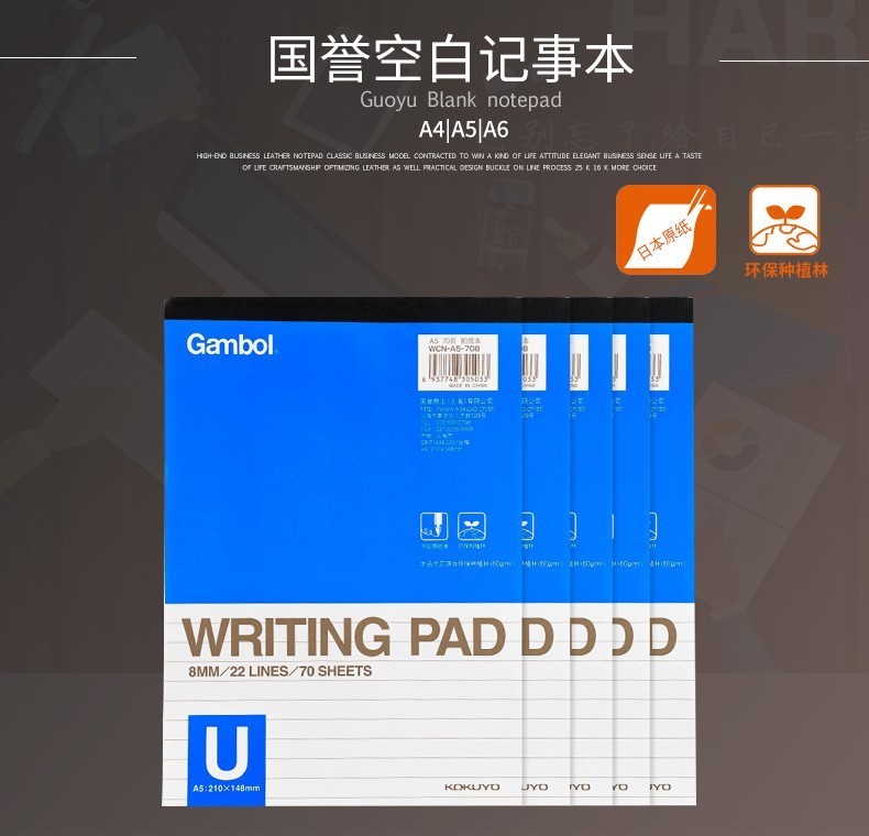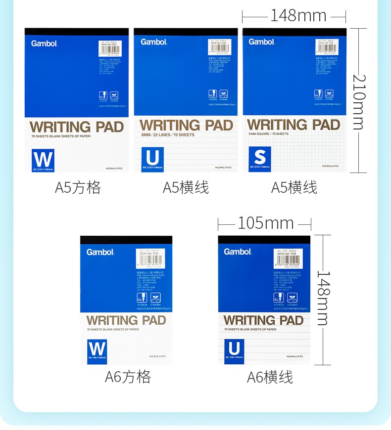 國譽(KOKUYO)Gambol渡邊A4|A5|A6豎翻軟面本學生用草稿本記事本拍紙本橫線空白筆記本 WCN-A5-708 A5/70頁 橫線/本