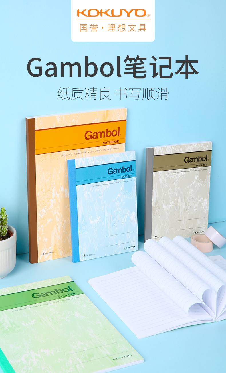 日本kokuyo國譽Gambo無線膠裝本渡邊系列學生用練習本子b5/50頁簡約筆記本
