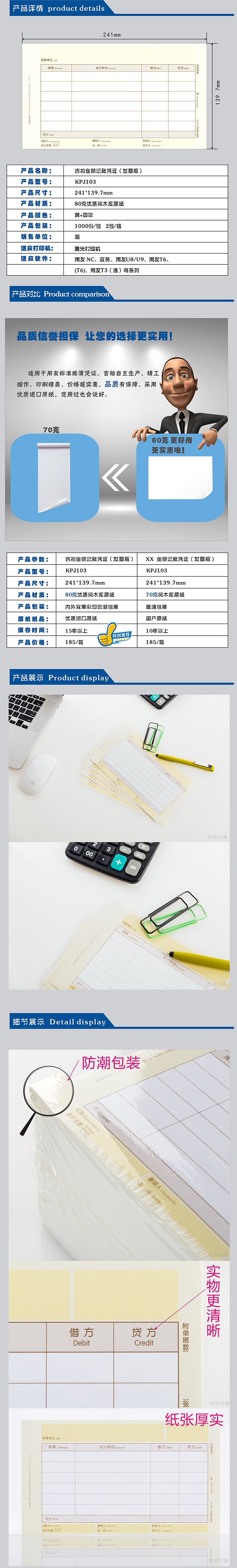 吉柏財務專用憑證KPJ103用友財務專用金額記賬憑證