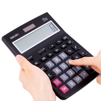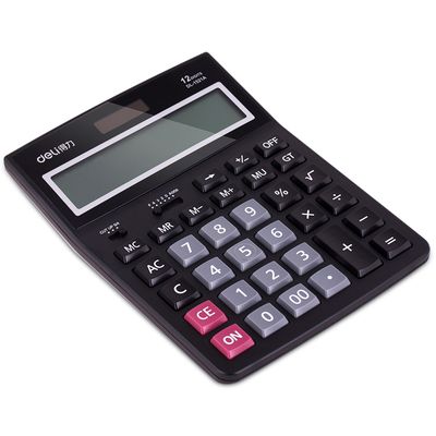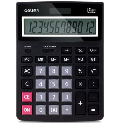 新品得力1521A桌面計算器12位雙電源大屏幕大加號商店黑色計算機