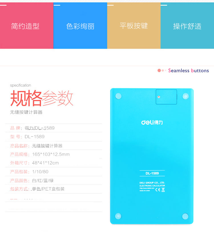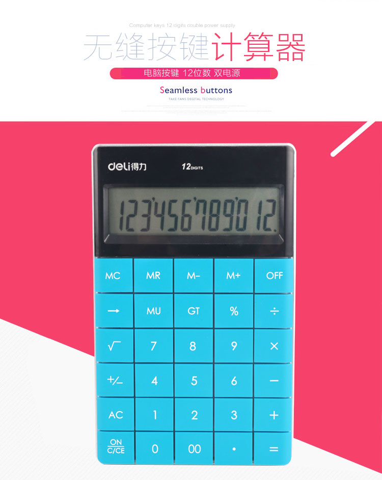 得力1589計算器多彩便攜大按鍵太陽能辦公商務型超大屏幕學生