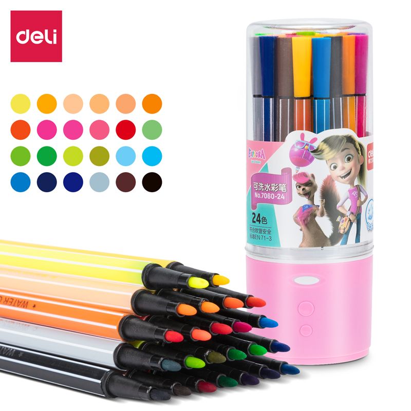得力7060-12色 18色 24色 36色 48色 細六角桿水彩筆 彩色水筆 畫筆 開學
