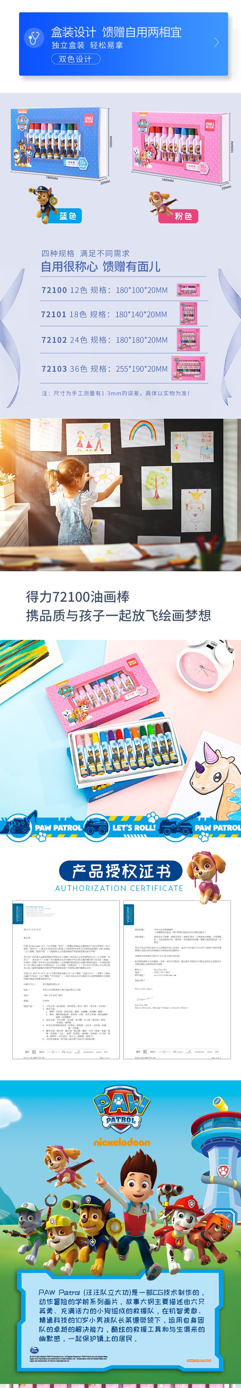 得力72100_汪汪隊立大功12色油畫棒(藍色) 72101 72103 開學