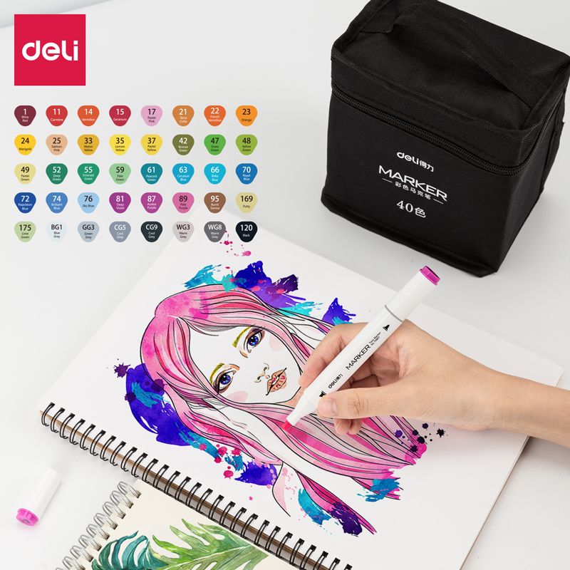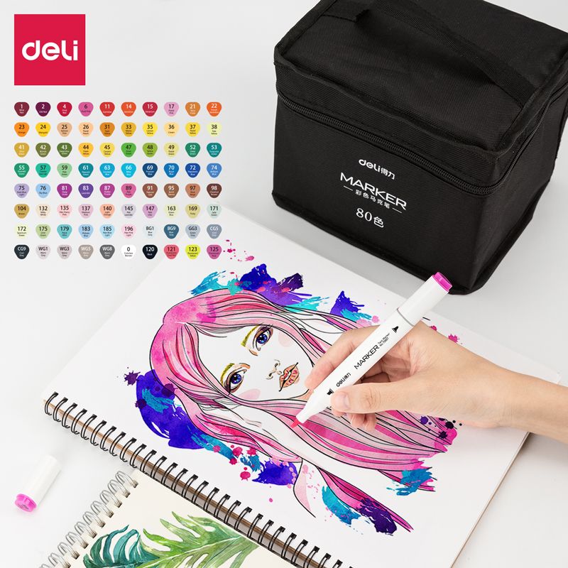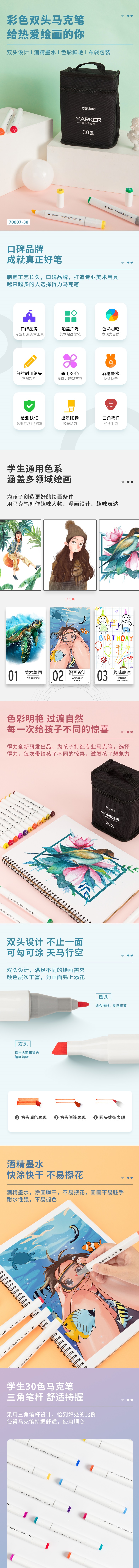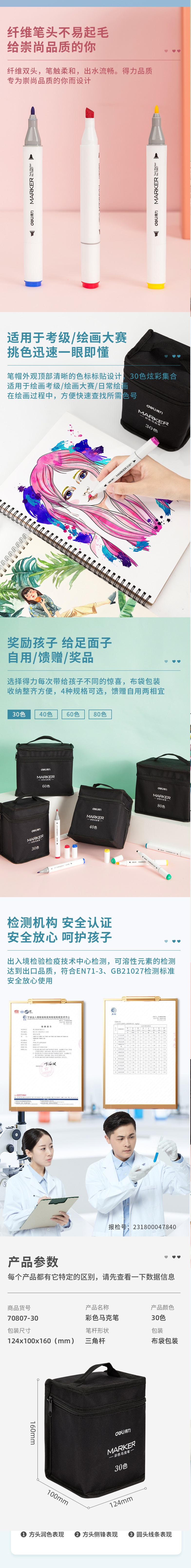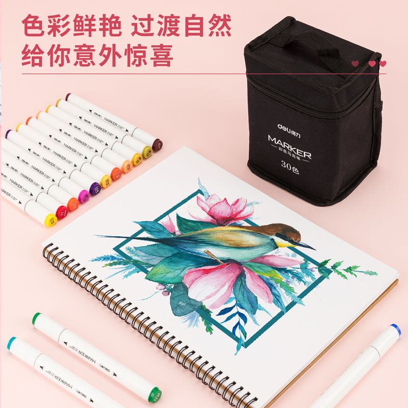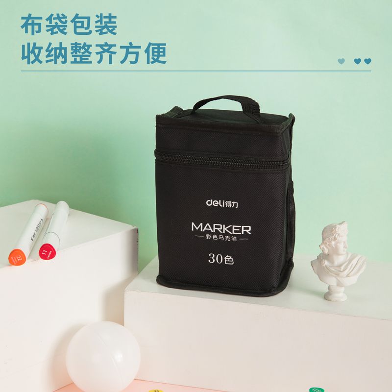 得力70807-30色 40色 60色 80色 布袋裝白色三角桿彩色馬克筆(混)(30色/袋) 開學