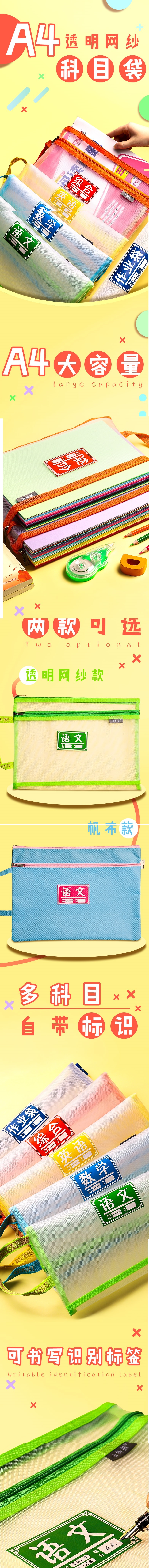 A4 文件袋 作業帶 a4文件袋透明網紗作業袋 試卷袋 資料袋 語文數學英語科目分類收納袋 開學