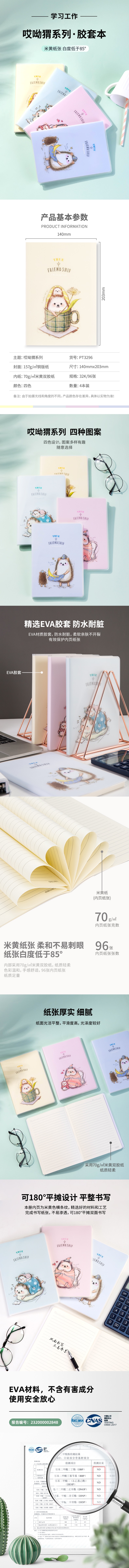 得力PT3296 A5 膠套本(哎呦猬) 開學 筆記本 軟面抄 記事本