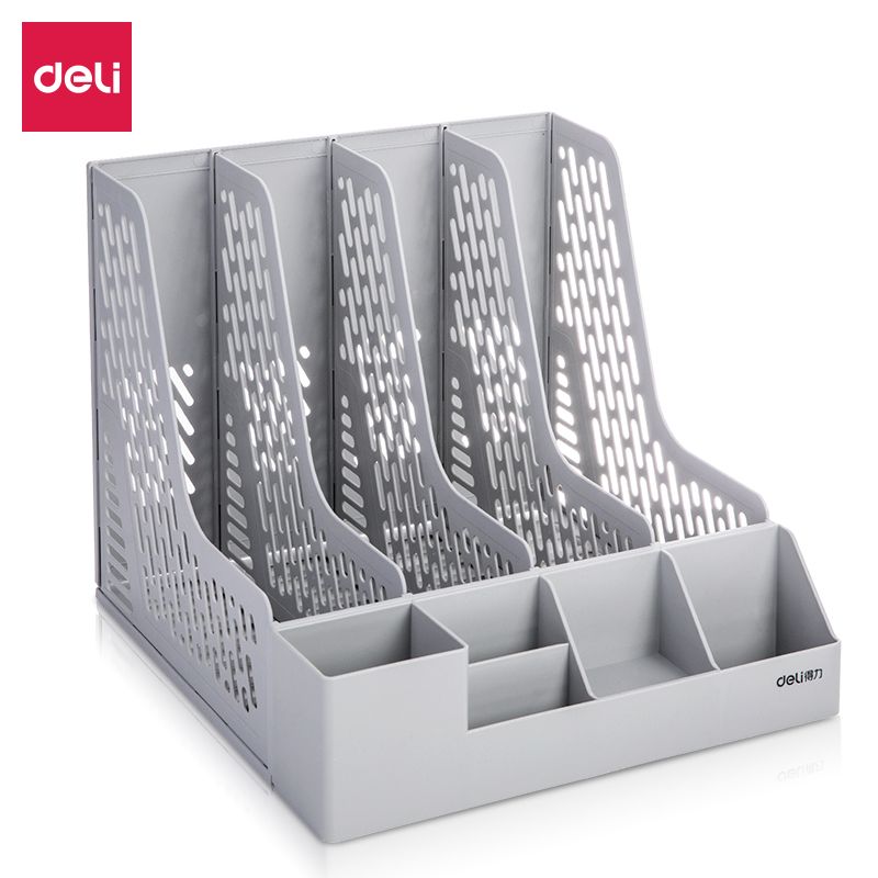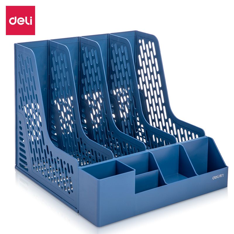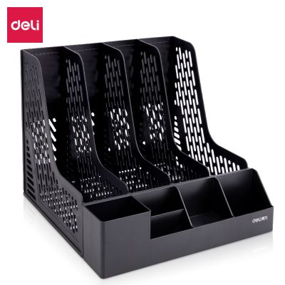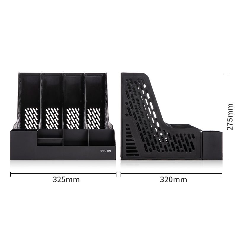 得力(deli)四聯(lián)帶筆筒收納桌面文件框 多功能鏤空文件架/文件欄/文件框/資料筐 辦公用品 黑色78981