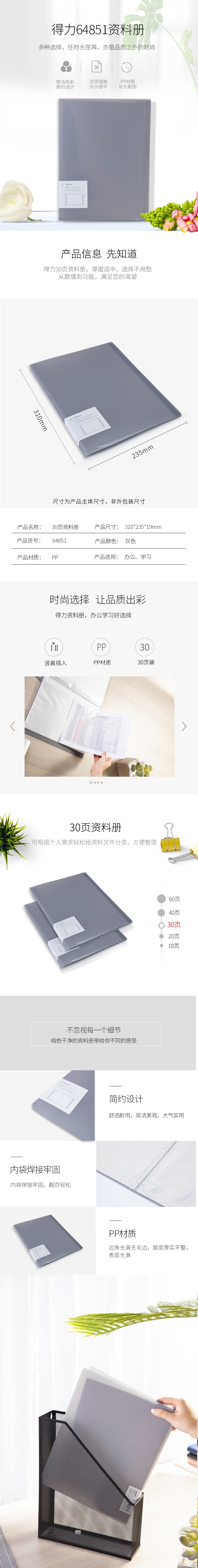 得力64851 30頁 資料冊 A4簡約多頁 30/40/60頁插頁夾