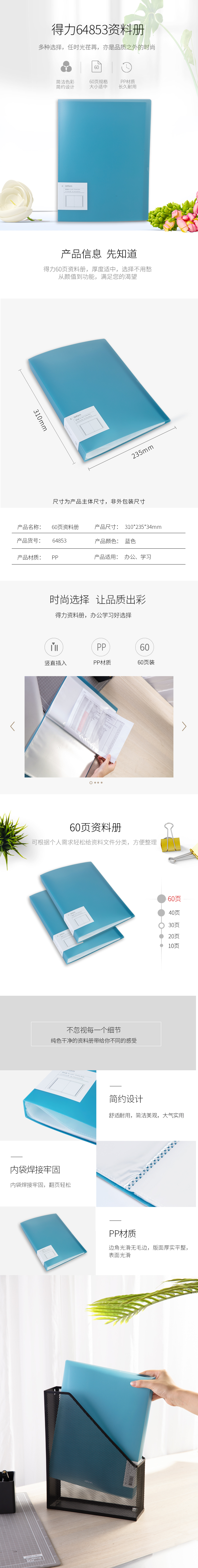 得力64853 60頁 資料冊 A4簡約多頁 30/40/60頁插頁夾