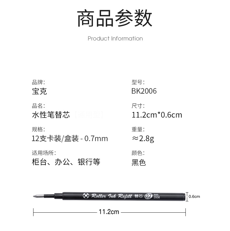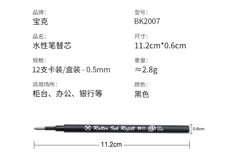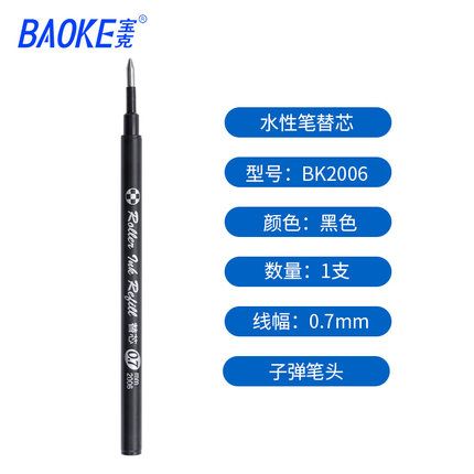 寶克BK2006中性筆芯0.5mm黑色水性筆芯寶珠筆替芯子彈頭0.7mm簽字筆BK2006筆芯
