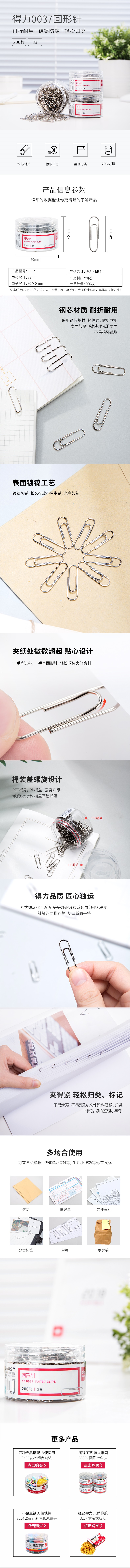 得力(deli)29mm鍍鎳回形針 3#金屬曲別針 200枚/筒 辦公用品 0037