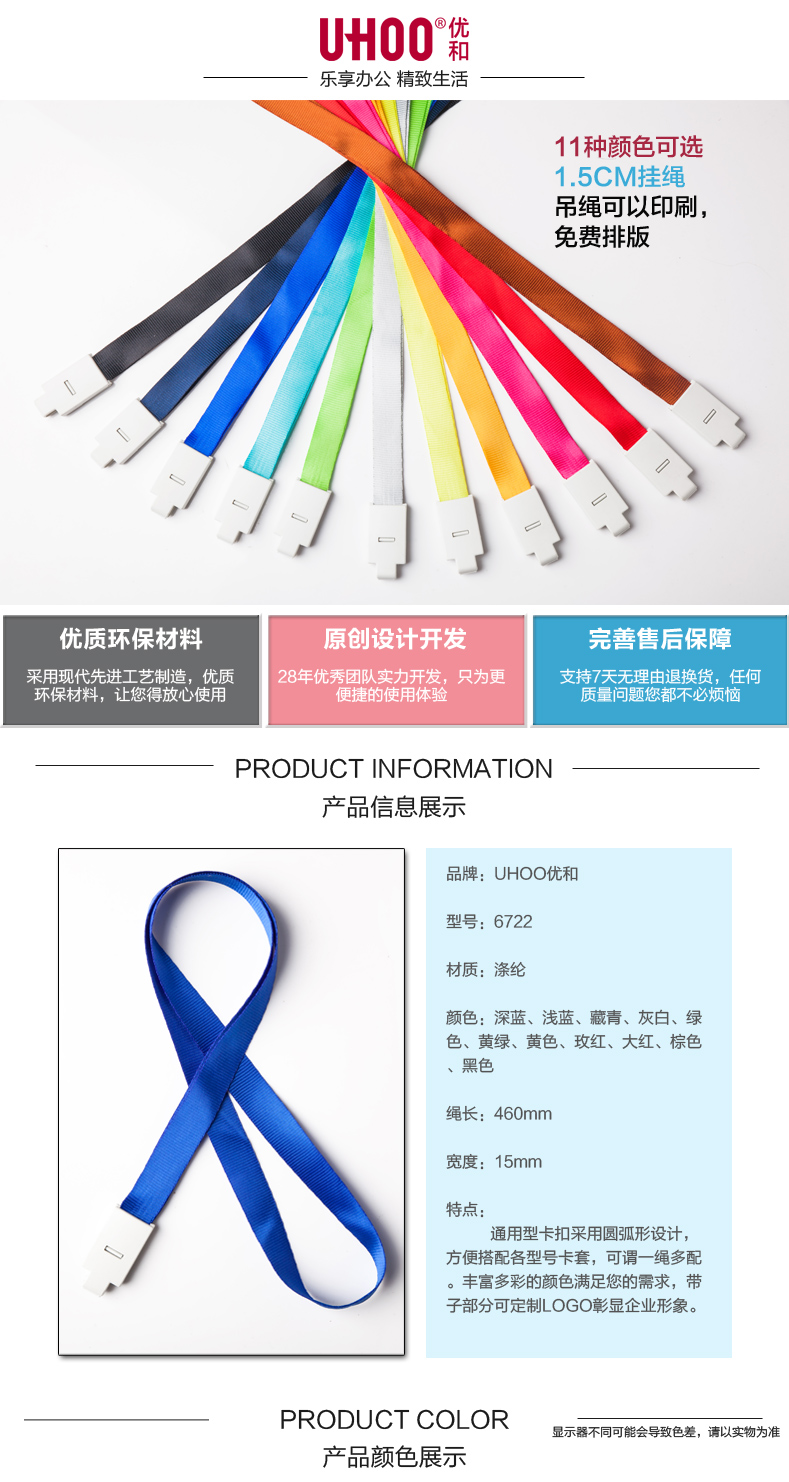 優和掛繩1.5CM 用于展會卡套吊繩 胸卡繩 6722 工作證工作牌件卡套學生吊繩胸卡員工牌吊牌胸牌學員培訓出入證門禁卡吊繩廠牌繩可定制