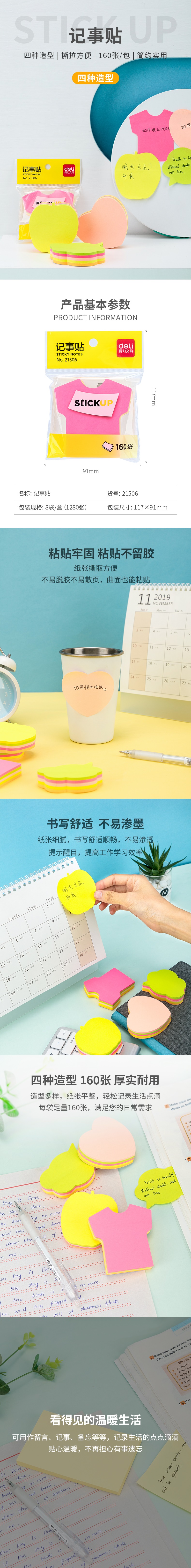 得力(deli)4本彩色異型便利貼彩色記事貼 可愛裝扮功能N次貼 百事貼 21506