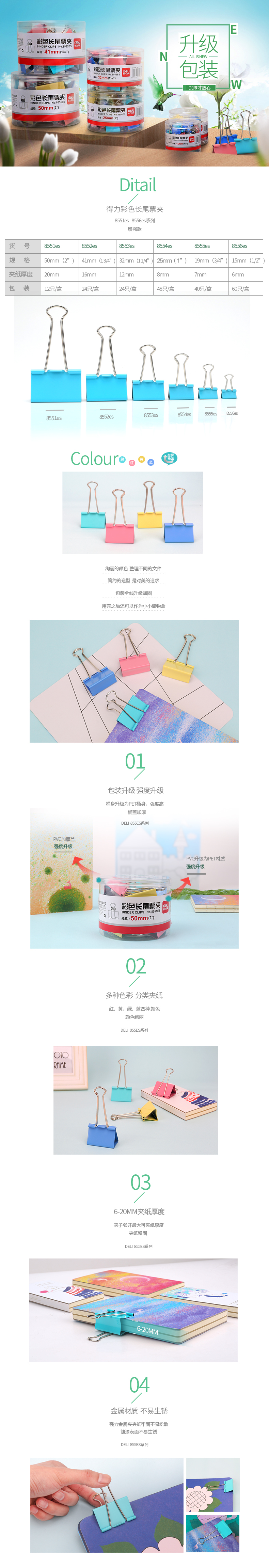 得力彩色長尾夾票夾 6#金屬燕尾夾票據(jù)夾子 辦公用品 8556ES 8551es 8552es 8553es 8554es 8555es