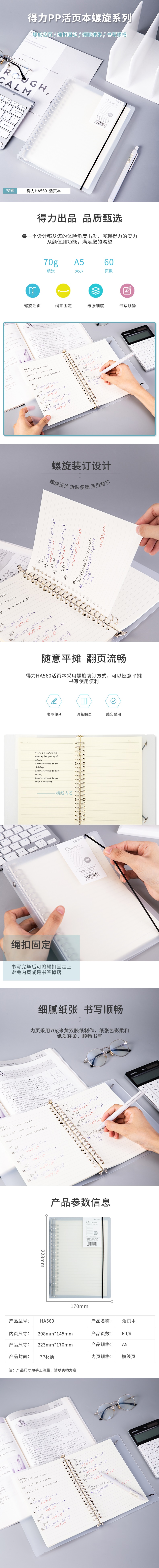 得力(deli)A5/60張活頁(yè)筆記本子 可替換芯記事本 考研復(fù)習(xí)筆記本文具 HA560活頁(yè)本