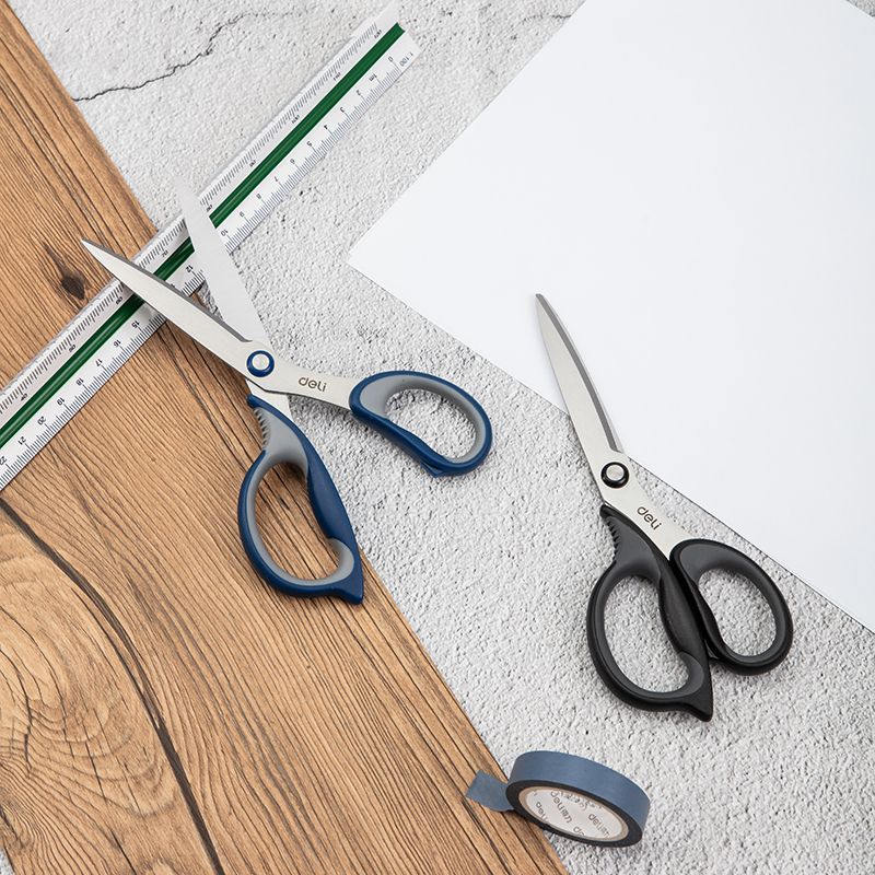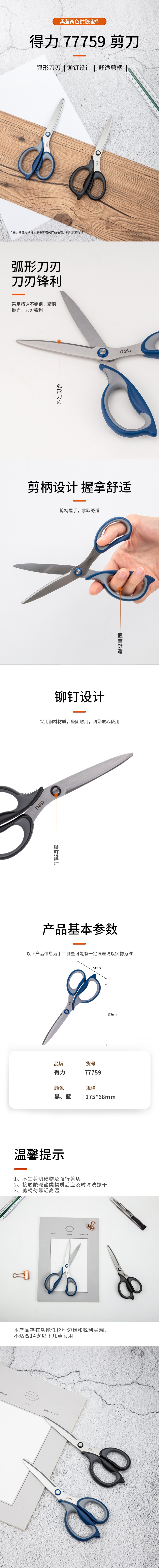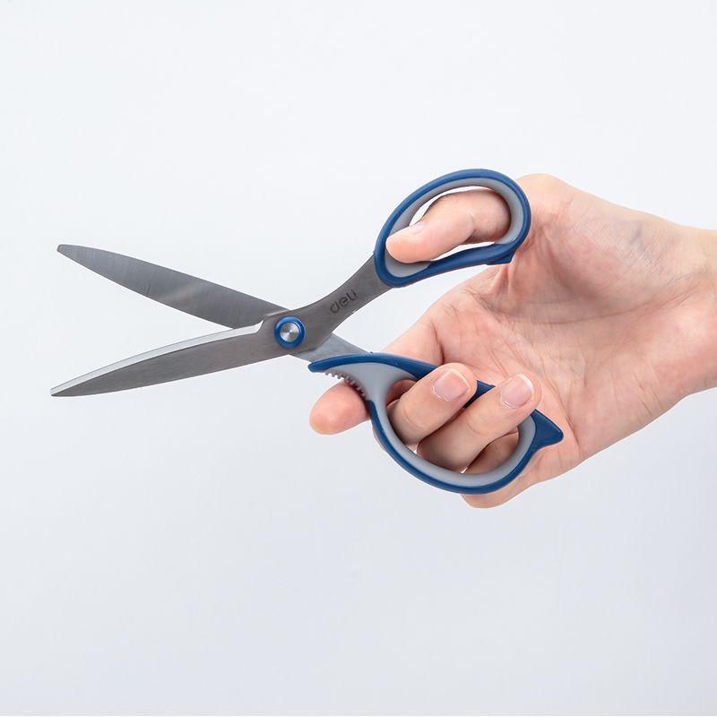 得力(deli)170mm中號辦公家用剪刀 弧形剪片省力剪刀 藍色77759