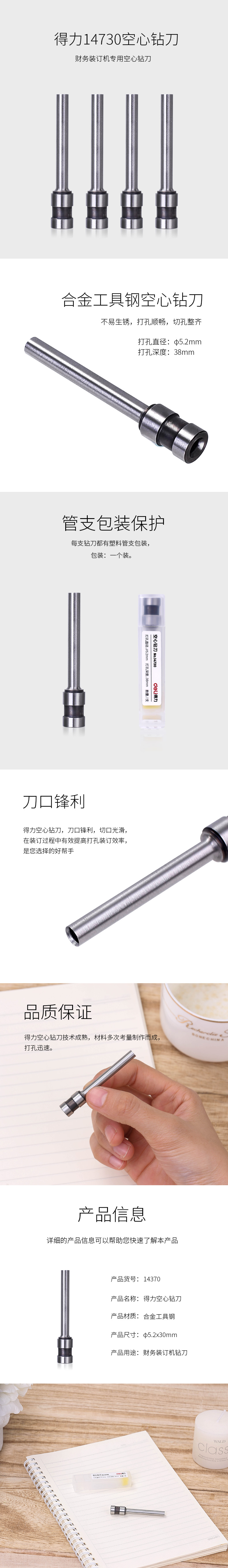 得力14730空心鉆刀訂機刀鉆頭φ5.2*38mm 適用多機型3877a