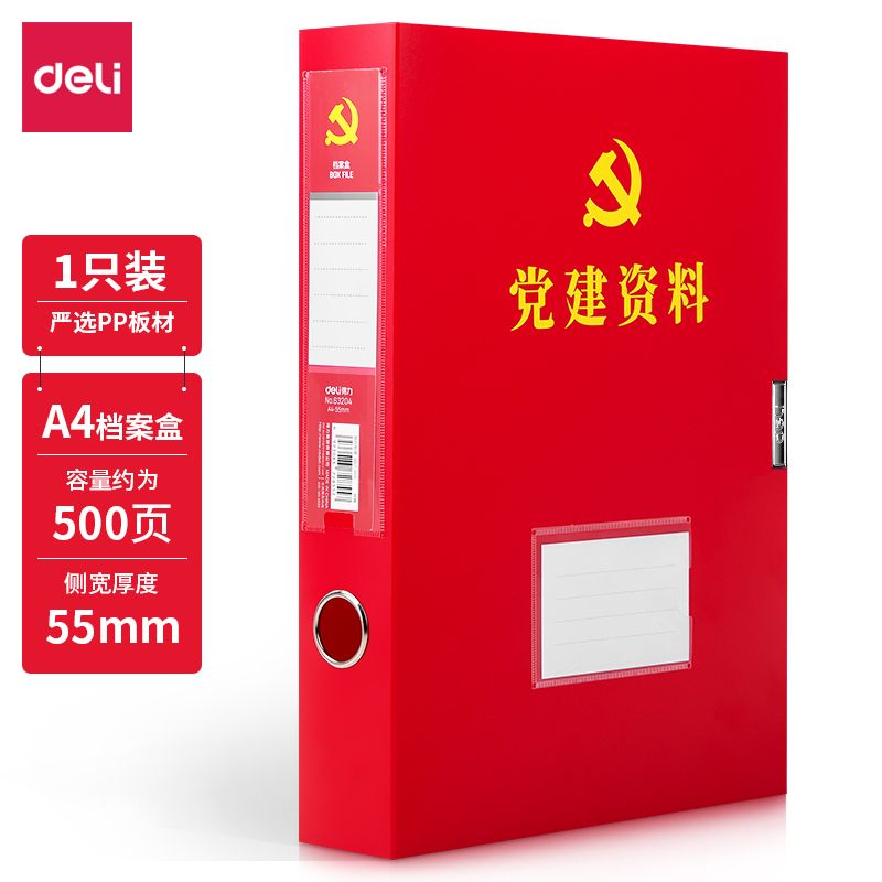 35mm寬 得力63203黨建檔案盒(紅)(個) 文件盒