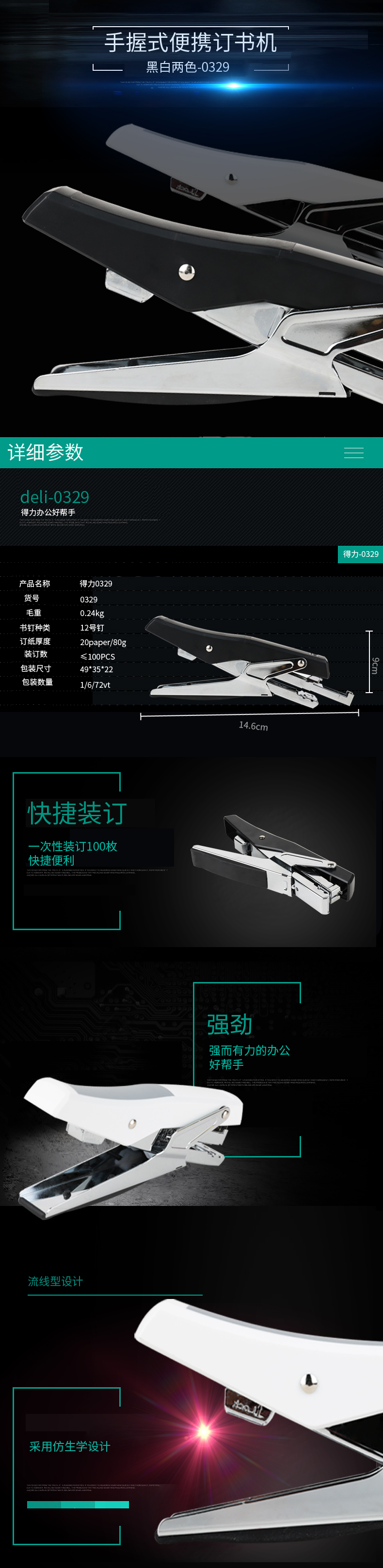 得力0329訂書機(黑) 12號訂書針 dlxp