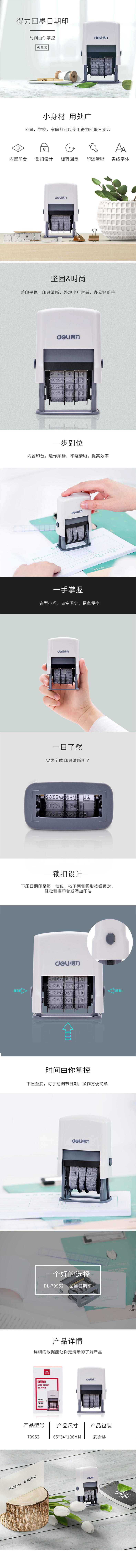 得力79952日期印(灰白) 回墨日期印 印章 dlxp