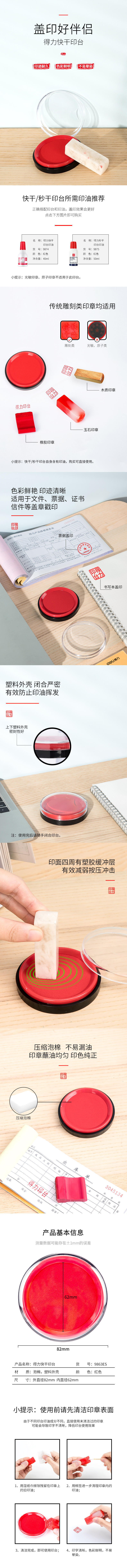 得力9863ES快干印臺(紅)(只) 印泥 dlxp