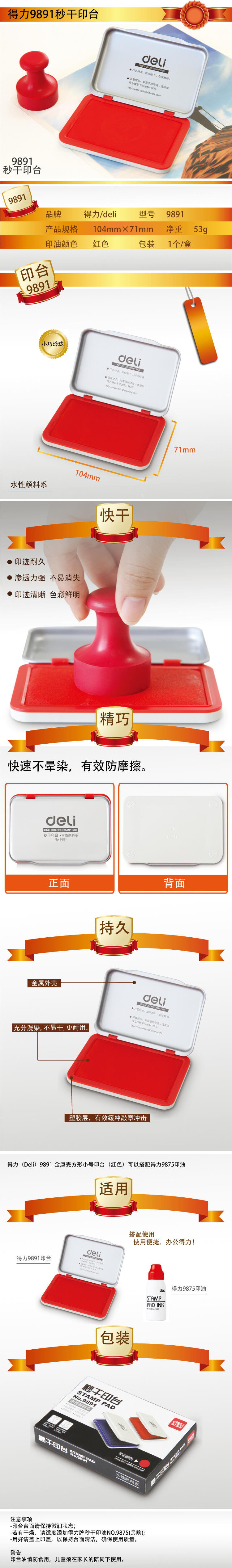 得力9891秒干印臺(紅)(只)104*71mm 印泥 快干印臺 dlxp