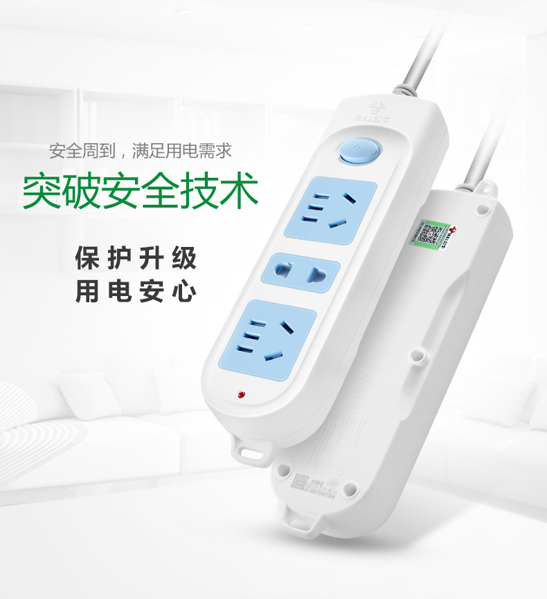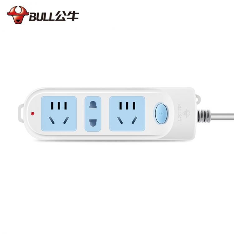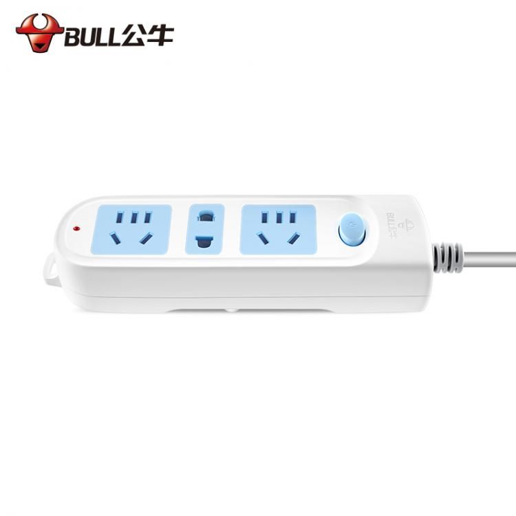 公牛(BULL)GN-606(藍白)新國標 三位總控 電源插線板 1.8M袋 插線板電源轉換器拖線板插線板接線版