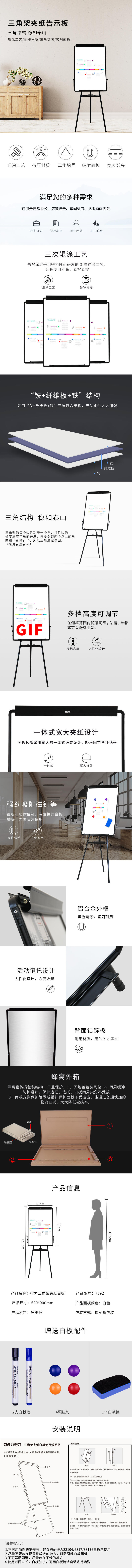 得力7892三腳架白板900*600(黑)(塊) 三角三腳架帶架夾紙磁性白板辦公會(huì)議寫字板海報(bào)廣告展示架(帶寬紙夾)