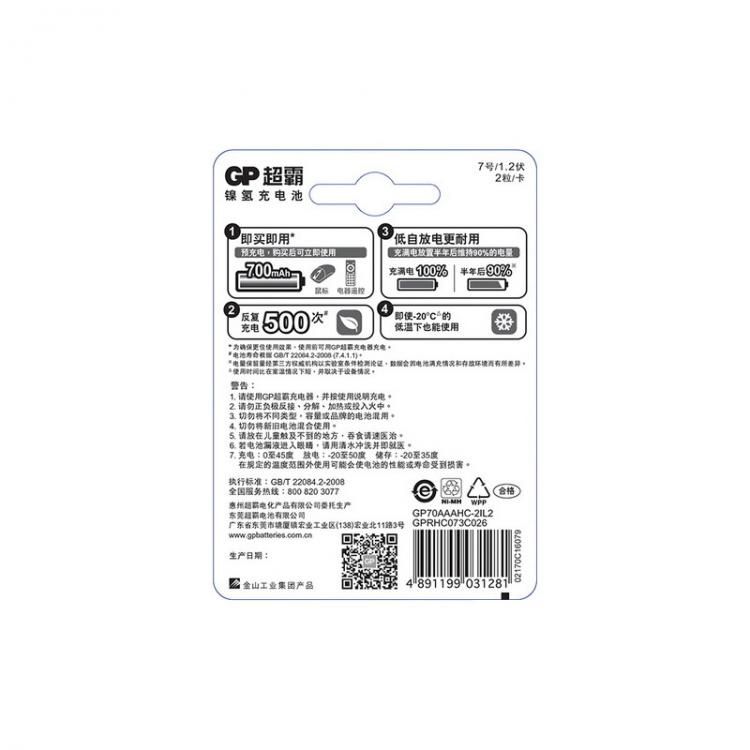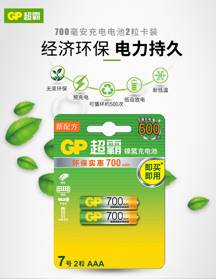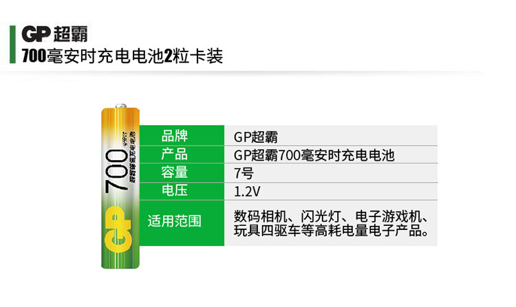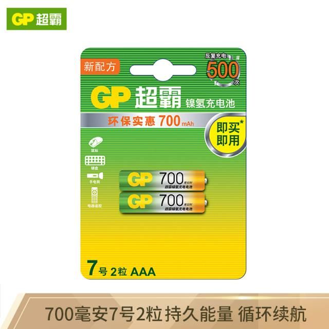 超霸 鎳氫7號(hào)700mAh充電電池2粒裝 適用于遙控器/玩具/體重秤/血壓儀/鼠標(biāo)鍵盤(pán)等 七號(hào)AAA