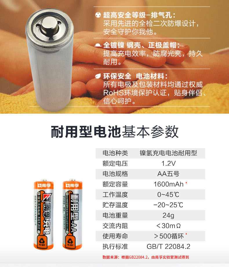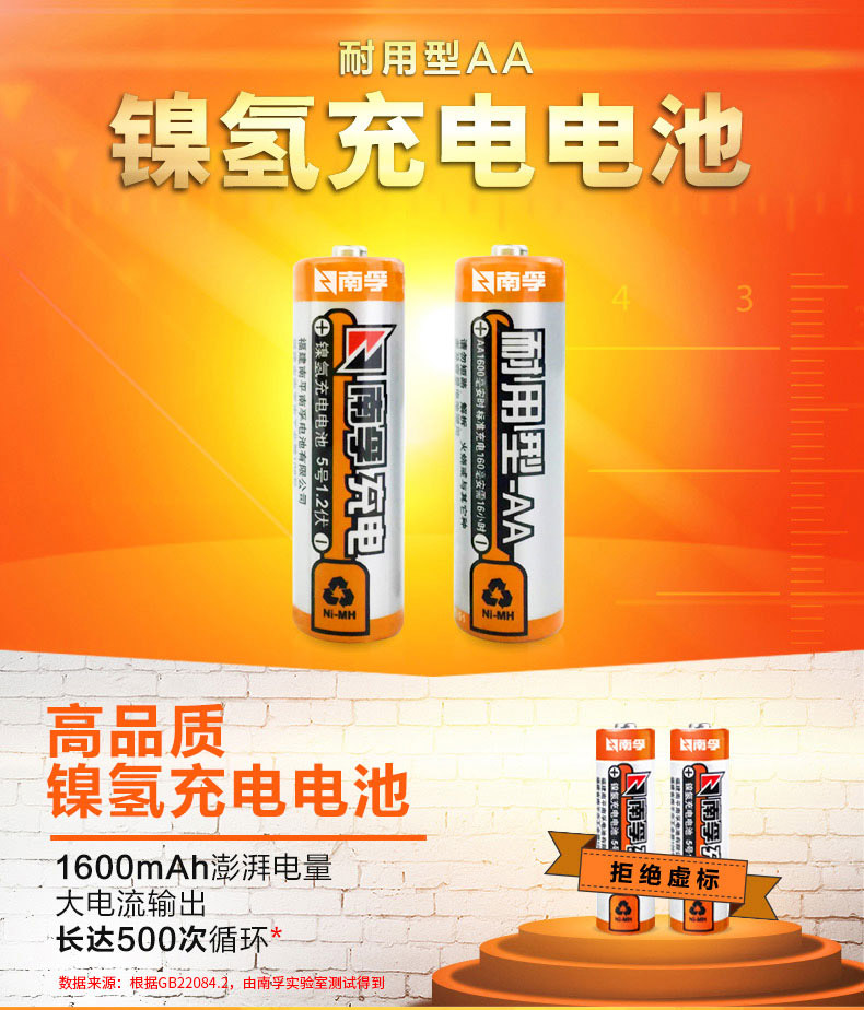 南孚 5號(hào) 7號(hào) 充電電池2粒 鎳氫耐用型1600mAh 適用于玩具車/血壓計(jì)/掛鐘/鼠標(biāo)鍵盤等