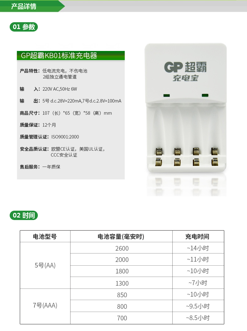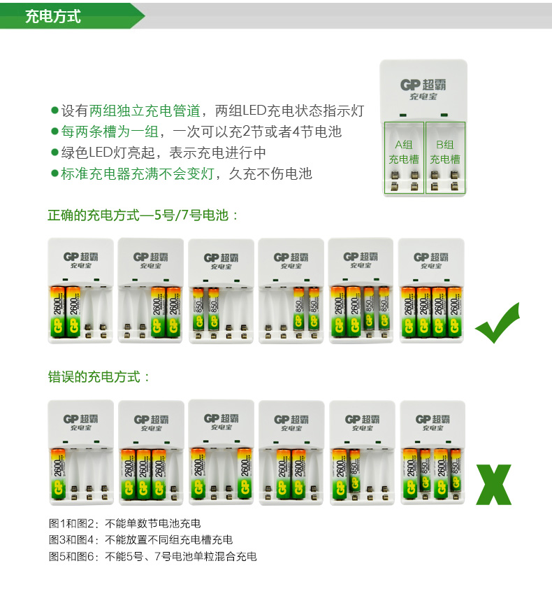 GP超霸充電器kb01空載充電寶5號電池充電器7號電池充電器