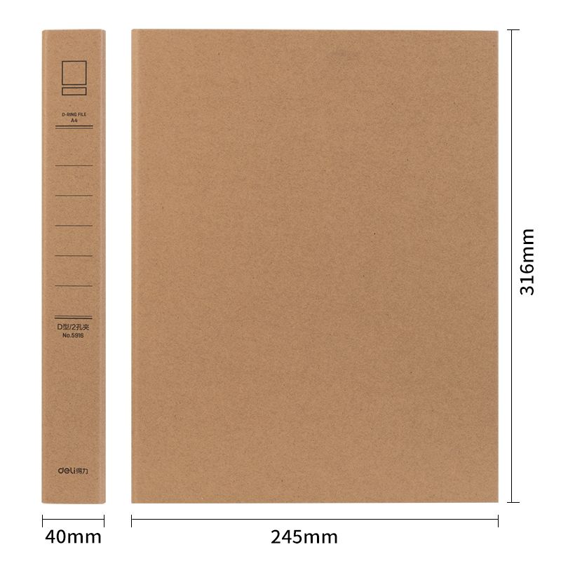 得力5916牛皮紙文件夾A4 /D型2孔資料整理收納夾資料夾二孔活頁(yè)夾